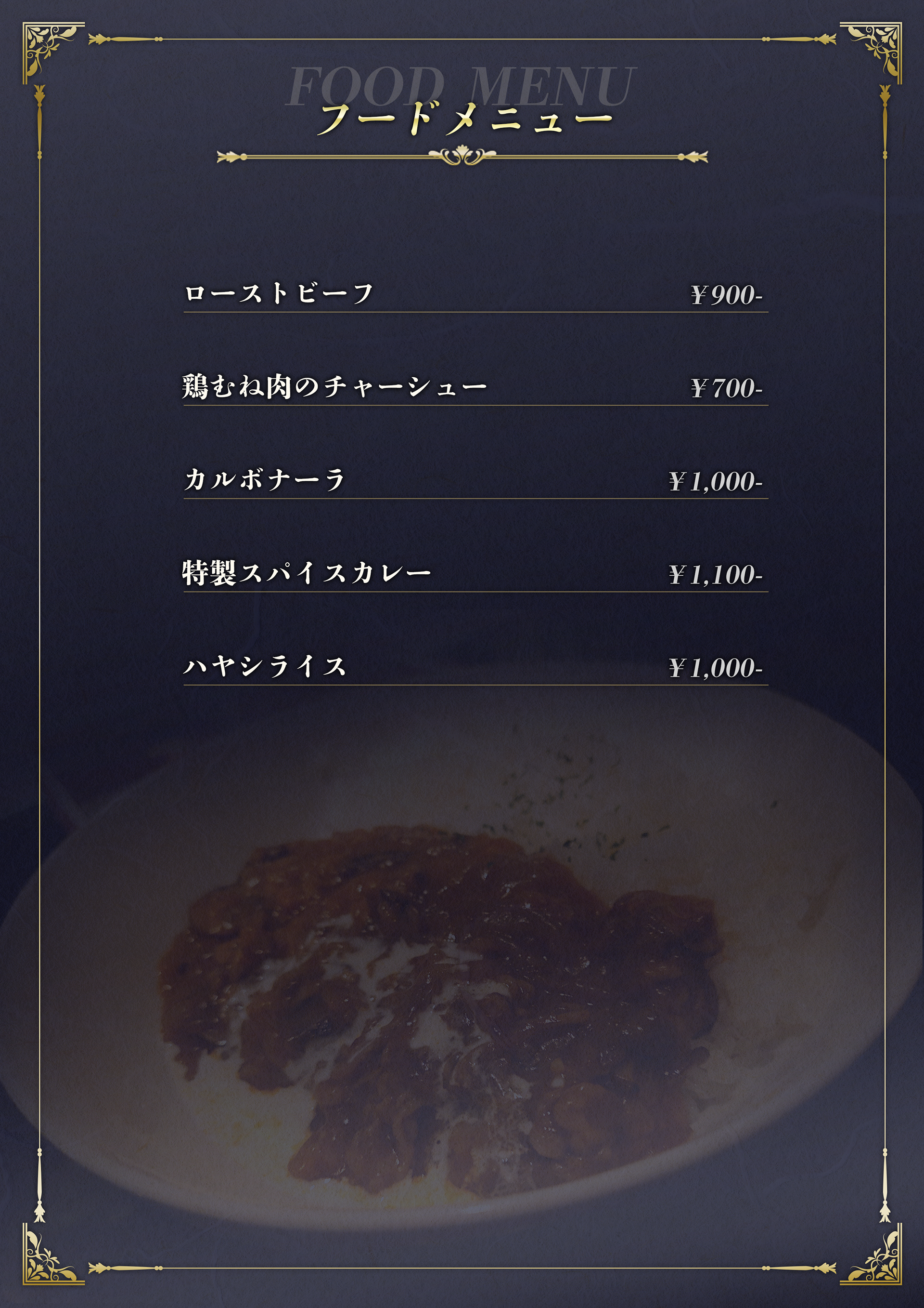 BARイベント用メニュー表